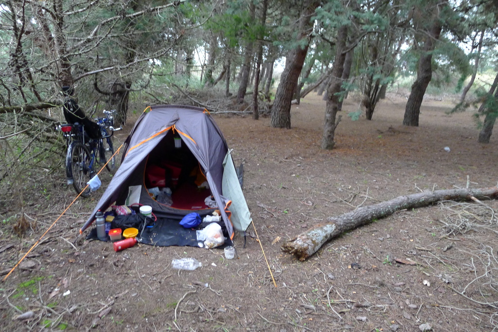 Ce soir (samedi) j'ai posé ma tente aux milieu de pleins de pins qui me protège