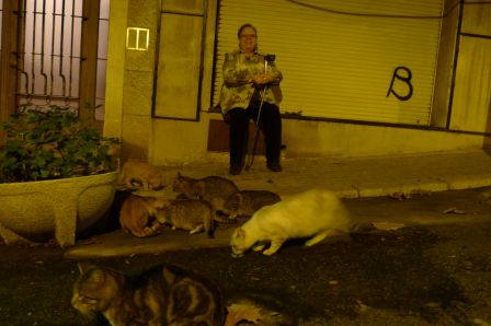 Ce soir, je suis accueilli à Portbou chez Alain et Philippe, grâce à un amis qui avais répondu à mon appel à hébergement, merci Seb (d'ailleurs si vous avez une adresse espagnole sur la côte Est, je suis toujours preneur !). Après une petite sortie en ville, j'ai fais connaissance avec la dame aux chats. Pour ceux qui connaissent les Simpsons, c'est exactement pareil. 19 chats pour ce soir !