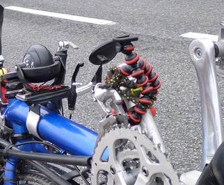 j'avais fixé l'appareil photo sur son trépied et attaché le trépied à l'avant du vélo comme sur la photo : https://selle-et-riz.com/public/... le trépied c'est le truc rouge et noir comme celui là :