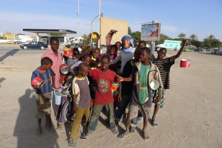 Nouakchott avec une nuée d'enfants curieux qui viennent à ma rencontre, c'est